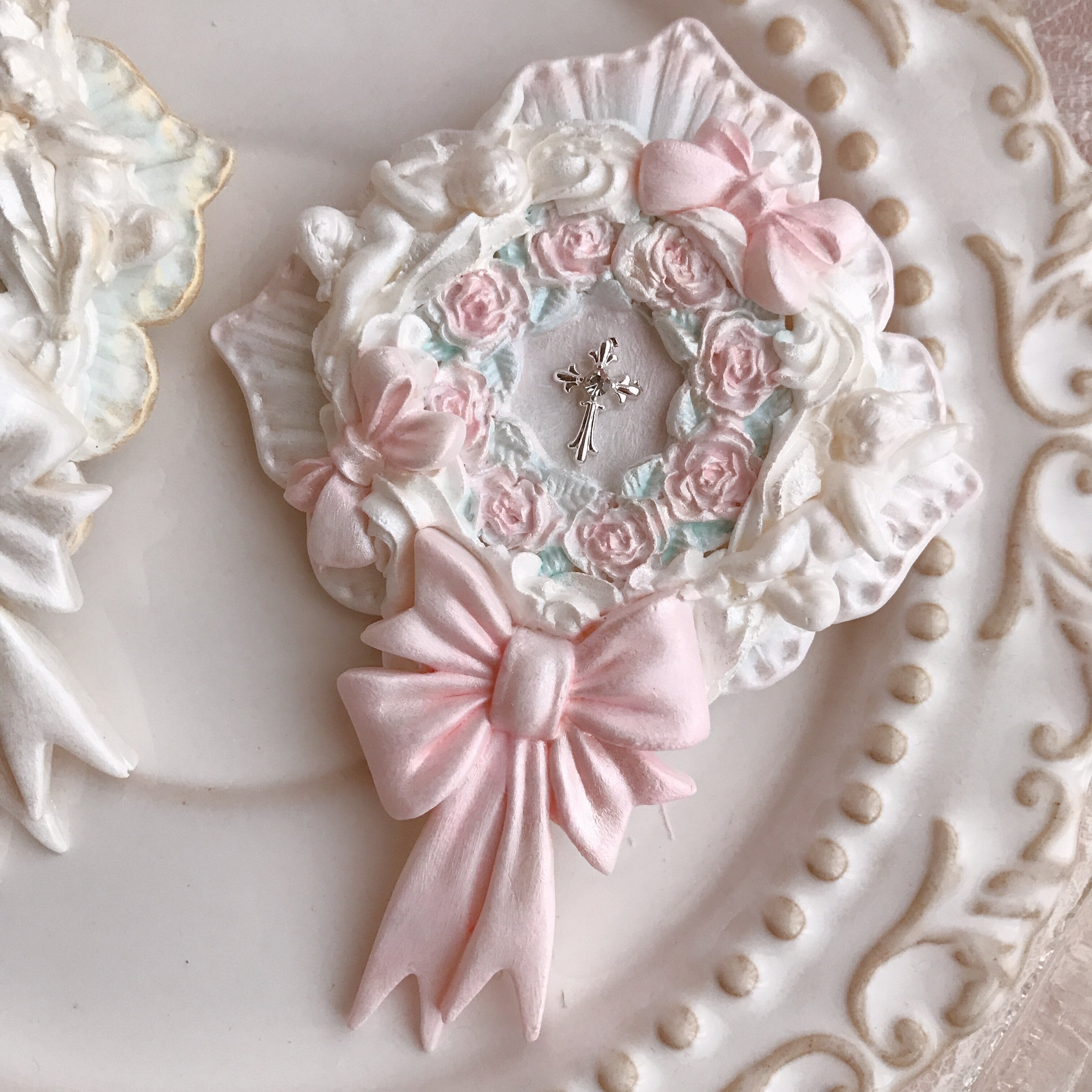 イタリアの教会で見た天井画や彫刻で、ふわふわの雲に包まれた天使たちがあまりにも印象的で、どうにかこの感動をアクセサリーに落とし込めないかなと試行錯誤した結果、とってもスペシャルなアイテムが仕上がりました。