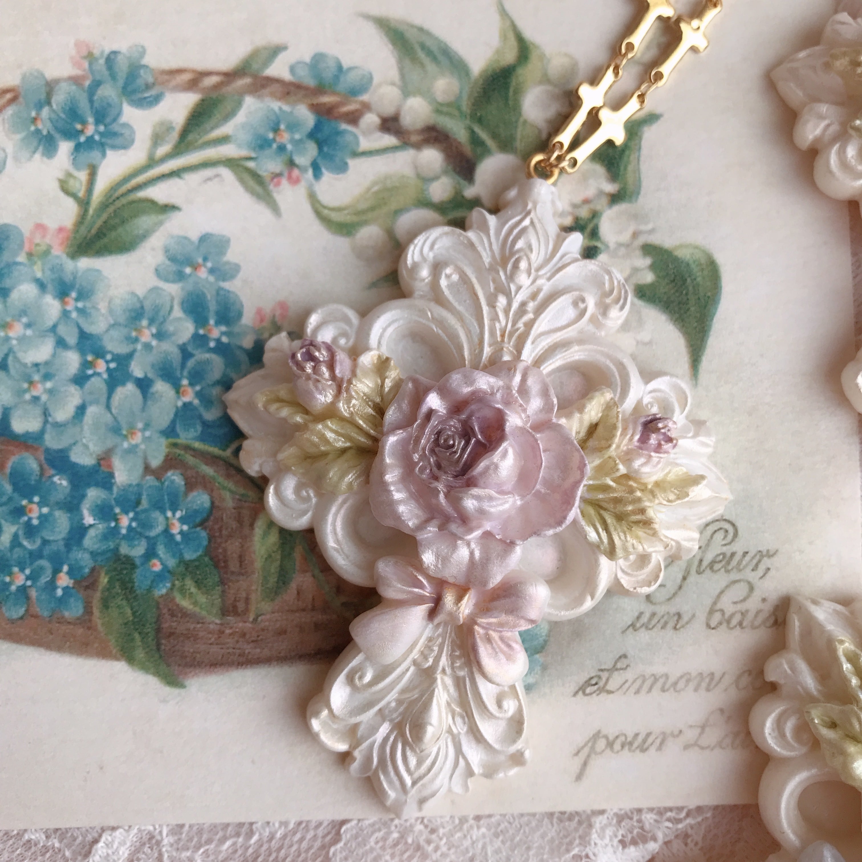 神秘的な薔薇の誓いと、それを結びつけるリボンがモチーフに秘められた物語を連想させます✨️