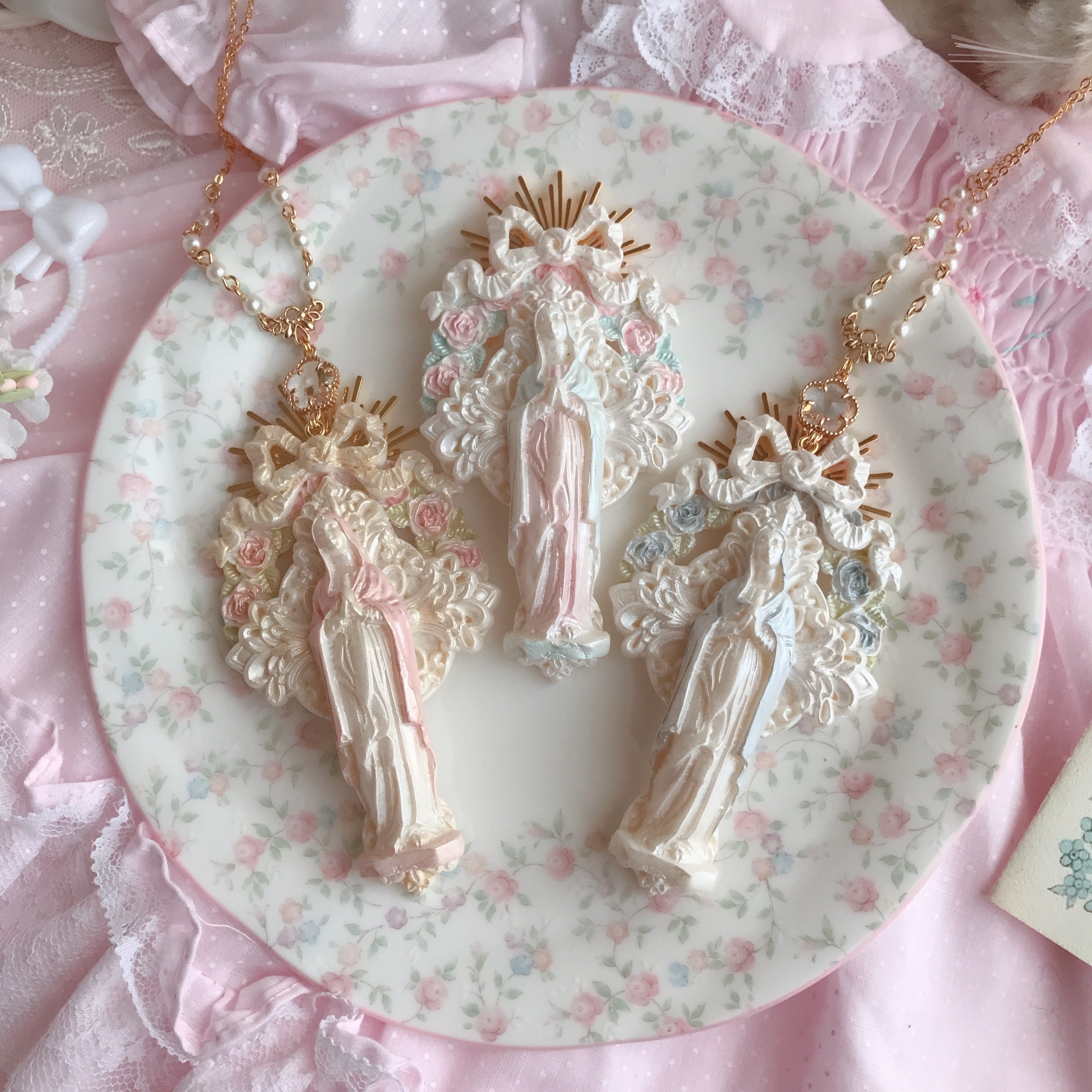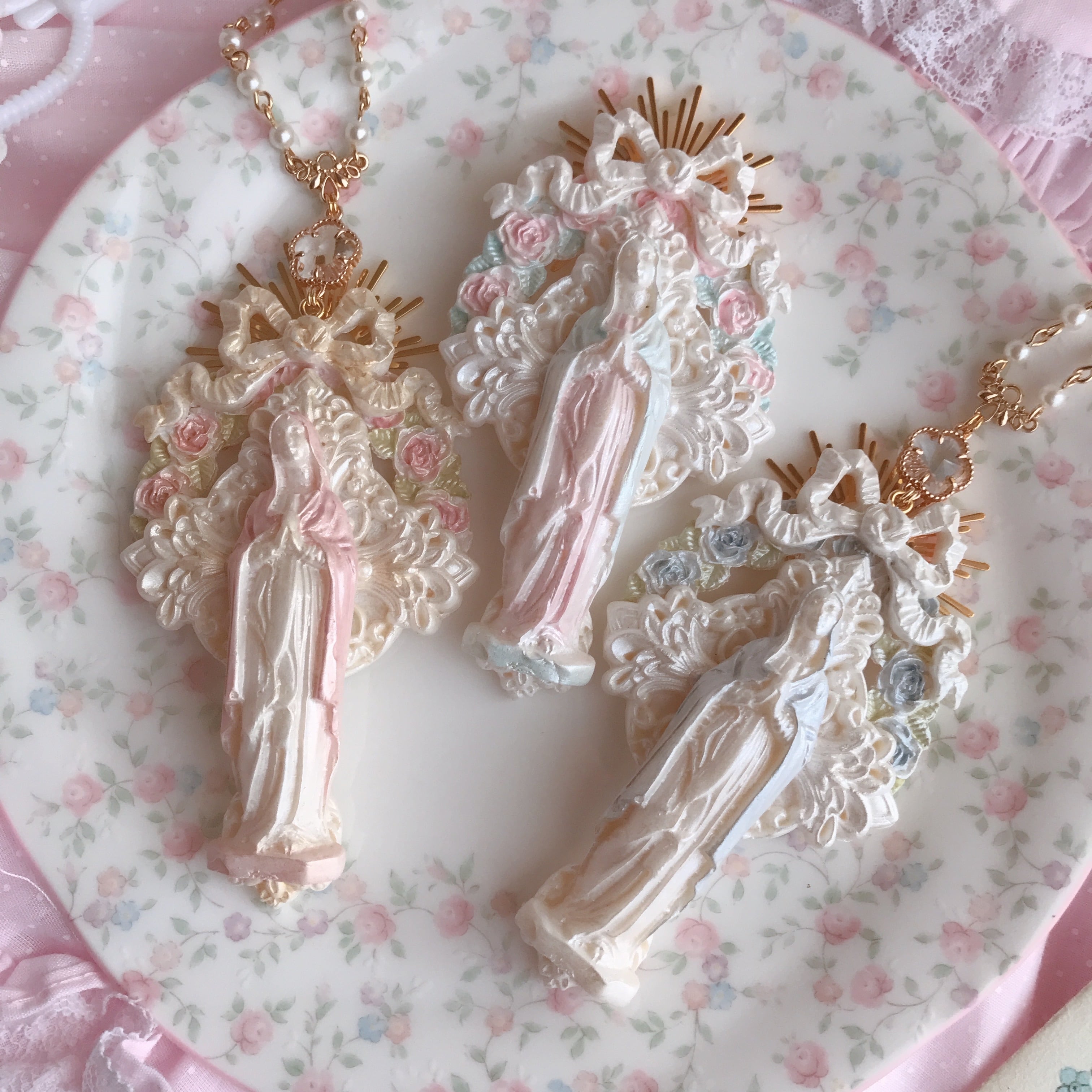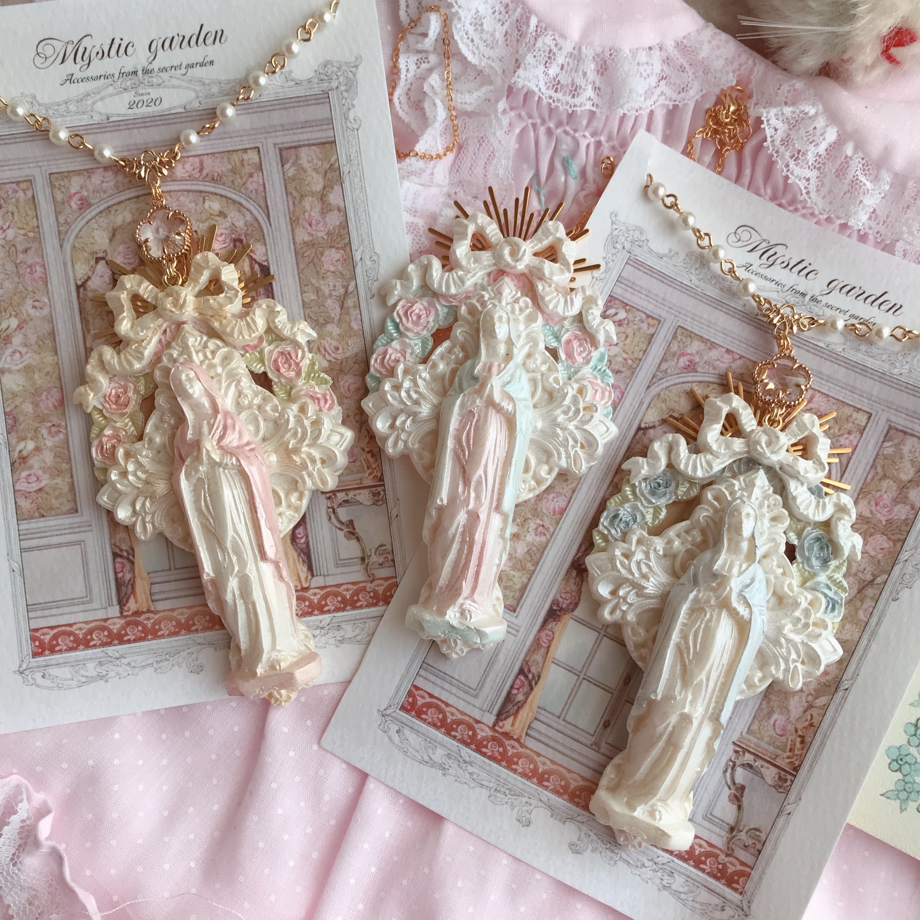 イタリアの教会で見た光に包まれた神々しいマリア像を、Mystic gardenらしい世界観で表現した新作のネックレスです。