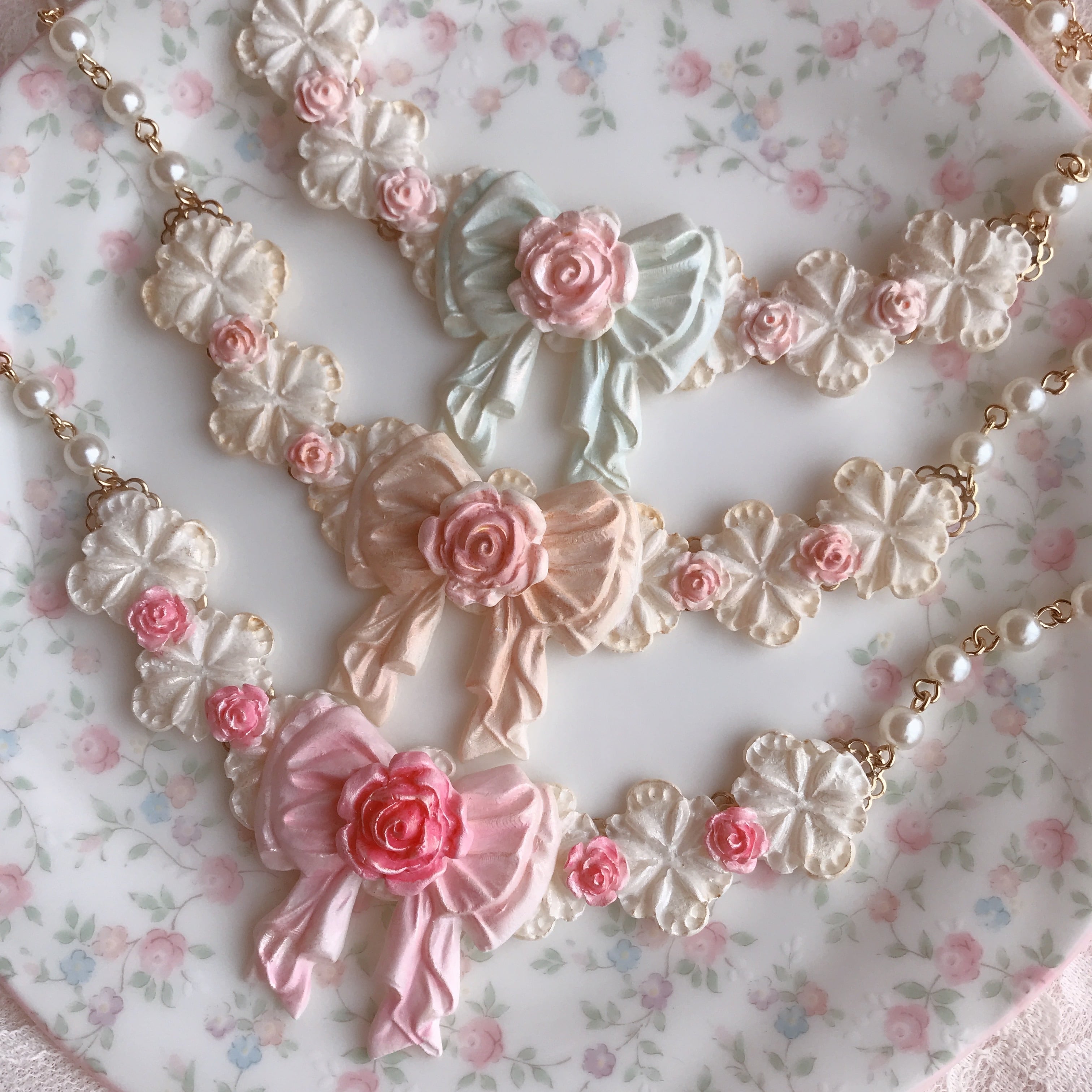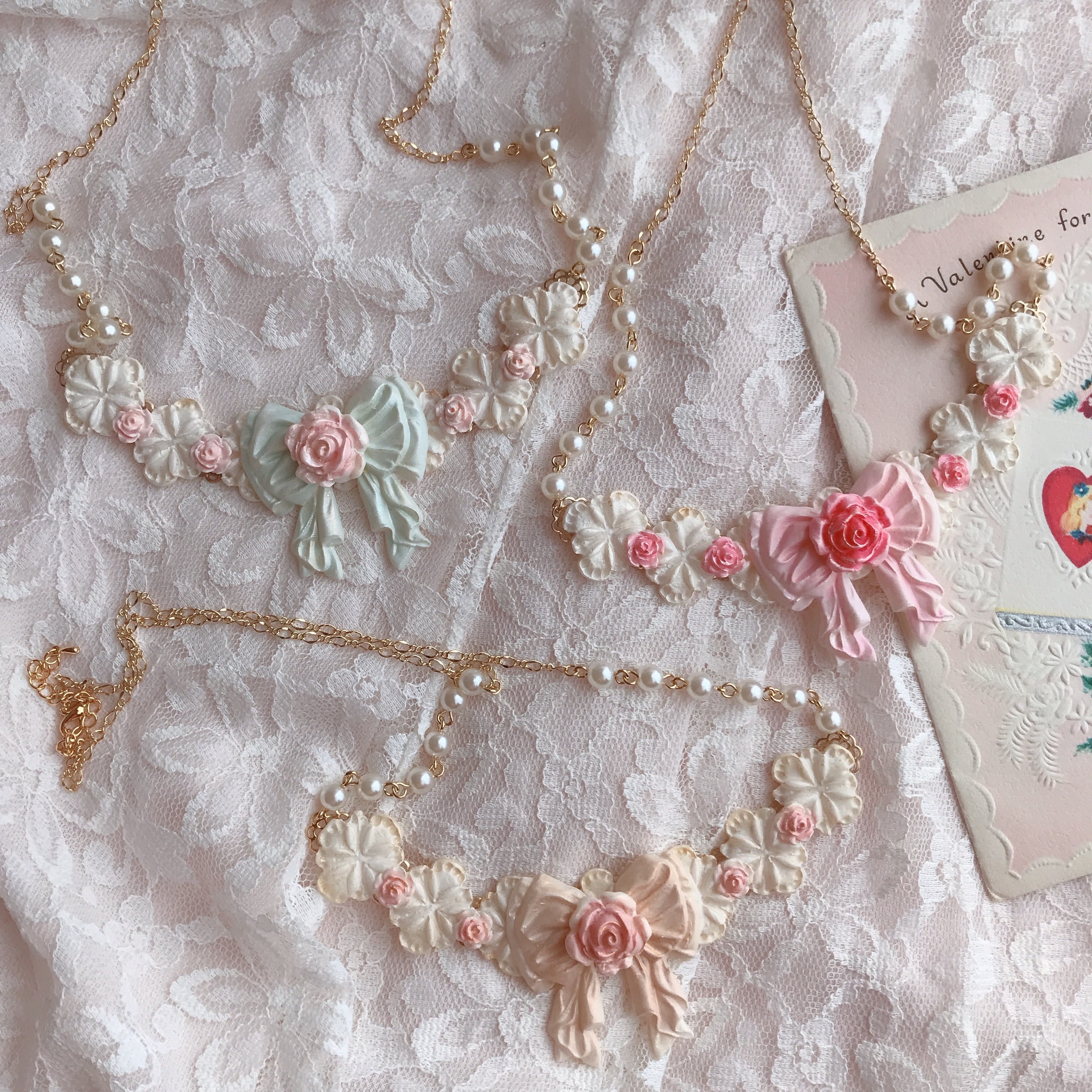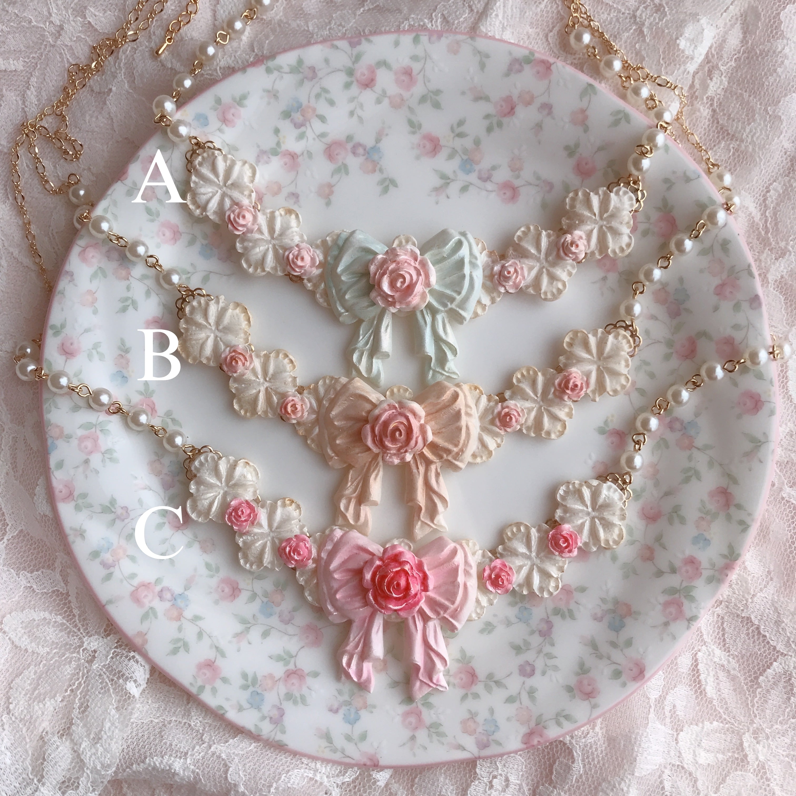 甘い砂糖菓子のようなレースと薔薇のネックレス。